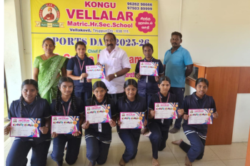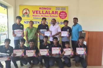 திருப்பூர் மாவட்ட அளவில் நடைபெற்ற சதுரங்க போட்டியில் கொங்கு வேளாளர் மெட்ரிக் மேல்நிலைப்பள்ளி மாணவர்கள் S. ஸ்ரீ ஹரி கேஸ் (I.A), S. ஸ்ரீ பிரணவ் (II.B,) M .அனீஸ் ஆதித்யா (III.A ) போட்டியில் கலந்து கொண்டு வெற்றிபெற்றமைக்காக பள்ளியின் தாளாளர் மற்றும் முதல்வர் பரிசுகளை வழங்கி மாணவர்களை பாராட்டினர்.