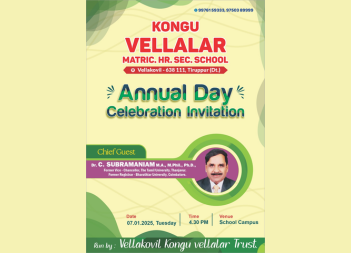 திருப்பூர் தேசிய அளவில் நடைபெற்ற சிலம்பப் போட்டியில் கொங்கு வேளாளர் மெட்ரிக் மேல்நிலைப்பள்ளி மாணவர்கள் பி. ஆர்த்தி VI.A முதலாம் பரிசினையும் ,பி. ஆதித்யாVII.A இரண்டாம் பரிசினையும் பெற்றமைக்காக பள்ளியின் தாளாளர் மற்றும் முதல்வர் பரிசுகளை வழங்கி மாணவர்களை பாராட்டினர்.